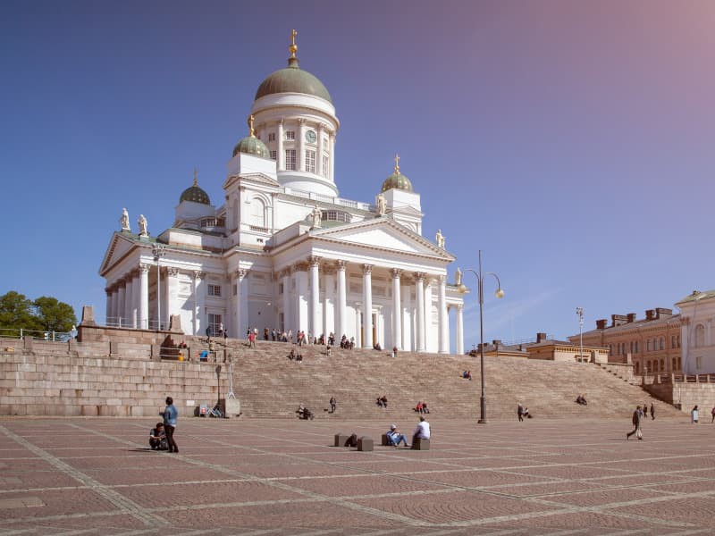 Exterior visit of the Lutheran Cathedral: spectacular building, crowned by the great green dome that is the symbol of the city.
