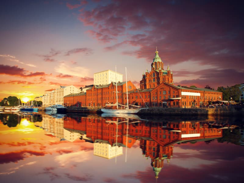 Exterior visit of the Lutheran Cathedral: spectacular building, surmounted by a large green dome, symbol of the city. At the end of the visit, we will go to the old open-air market where you can buy typical Finnish food.