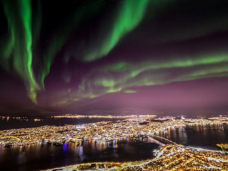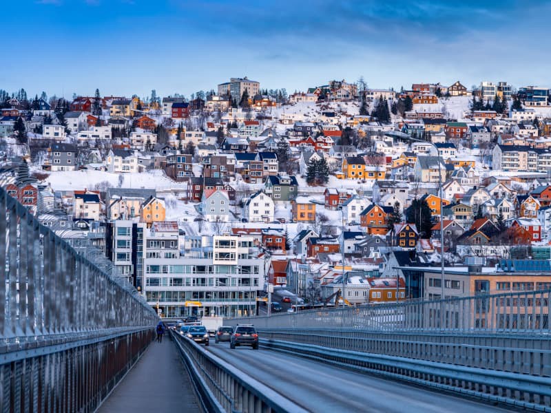 Discover the Norwegian city of Tromsø, located on the small island of Tromsøya, 220 miles north of the Arctic Circle, one of the best places on the planet to see the Northern Lights. Tromsø is also known for being a center for art, history, gastronomy, as well as for its lively nightlife and immense forests.