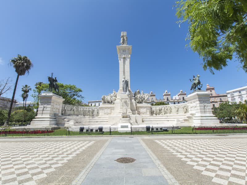We will begin our excursion with a panoramic tour by bus around the walled area, passing by Cuesta de las Calesas, Plaza de España, Murallas de San Carlos, Alameda Apodaca, Parque Genovés, Baluarte, La Caleta Beach, the Castles, Campo del Sur, the Cathedrals, the Roman Theatre, Puertas de Tierra, and Plaza de San Juan de Dios, where we will make a stop to get off the bus.