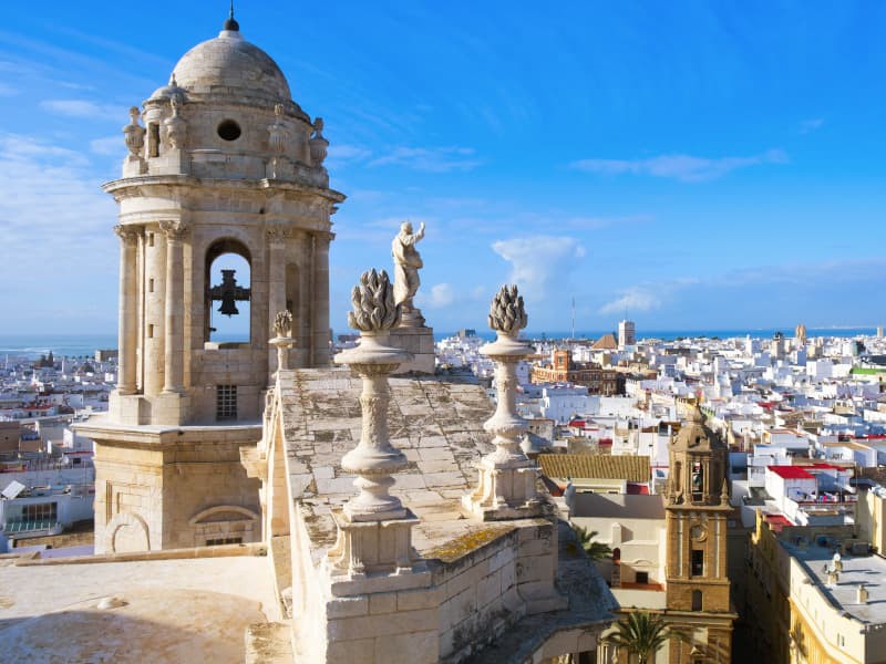 During the walk, we will see Plaza de la Catedral, Calle Compañía, Plaza de las Flores, Calle Ancha, Plaza de San Antonio, Plaza de Mina, and the exteriors of some emblematic monuments such as the Torre Tavira, the Museo de las Cortes, the Oratorio de San Felipe Neri, and the Museum of Archaeology and Fine Arts, among others.