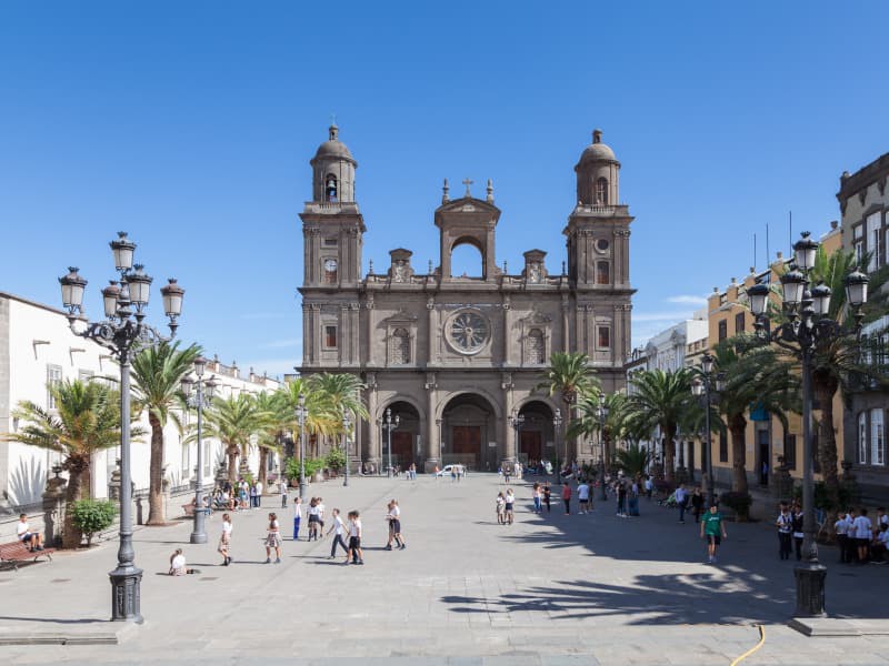 We’ll head to the historic district of Vegueta to visit Plaza Mayor de Santa Ana, one of the most iconic places in Las Palmas, located next to the most important building in Canarian architecture, the Cathedral of the Canaries — a perfect spot to take photos with the famous dogs of Gran Canaria and admire the façade with its imposing twin towers.