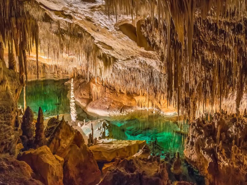 Inside the caves lies a large underground lake, Lake Martel, considered one of the largest underground lakes in the world (177 m long and 30 m wide). Here, visitors can enjoy daily classical music concerts featuring pieces by Caballero, Chopin, Offenbach, and others. The unique beauty of these caves is enhanced by the stunning lighting design created by engineer Carlos Buigas.