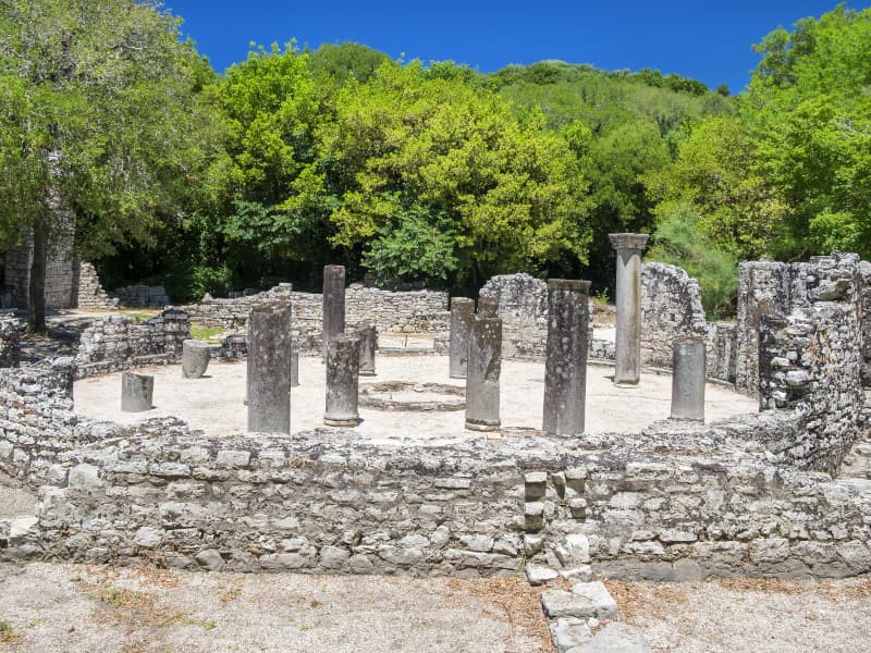 After the conquest of the city by the Romans in the second century, Butrinto developed with the construction of a port. Nearby are a Roman bath, a palace, a temple, the old forum. At the beginning of the 5th century the baptistery was built. Circular in shape, it is one of the most beautiful legacies of primitive Christian art in Europe. The oldest remains of the site are cyclopean stone walls that originally protected the city.