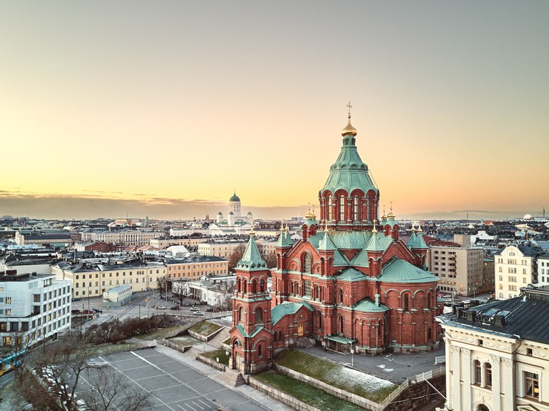 At the end of the street are the Market Square and the port: this area, very lively, is all dominated by the Orthodox Cathedral of Uspenski, whose main features are the thirteen domes and the red bricks of its structure. It is the largest Orthodox cathedral in Western Europe, a magnificent and impressive example of the architecture of Slavic tradition.