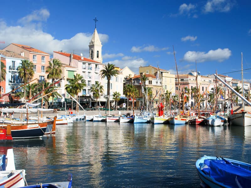 There is about an hour to enjoy your stay here in Sanary with its church and tower and fishing port and many old historic houses.