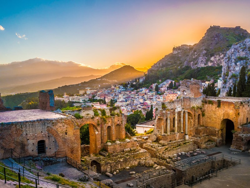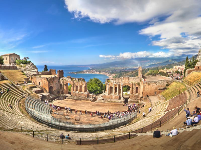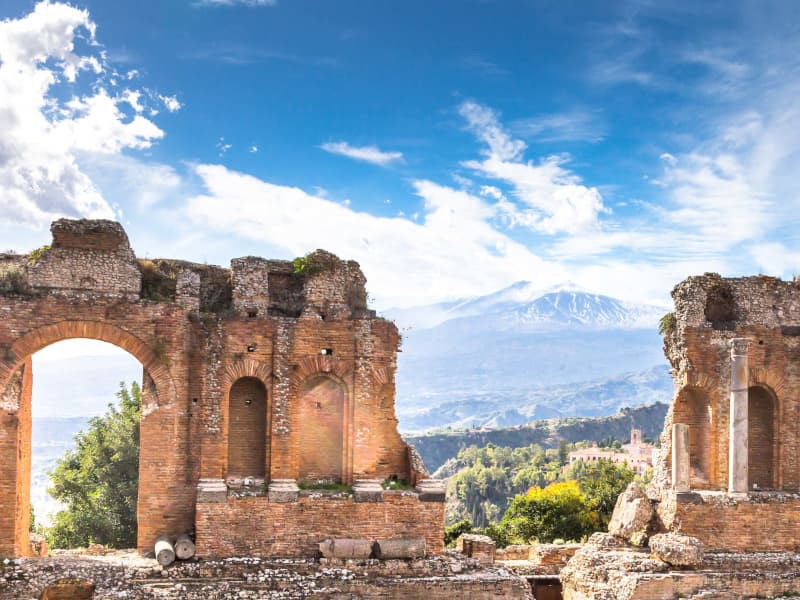 Afterwards you will visit the Greek Theater, with its amazing amplitude and extraordinary acoustics. This theater was rebuilt in Roman style in the second century AD. C., and has a diameter of one hundred and nine meters. It is the second largest theater in Sicily after Syracuse. From the high areas there are spectacular views towards the majestic Mount Etna, the largest and still active volcano in Europe.
