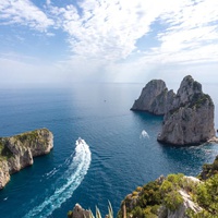 On board the Aliscafo (ferry) we will make a pleasant journey towards a rugged coast and framed by cliffs that rise from the sea crowned by vineyards and gardens, to discover the island of Capri.