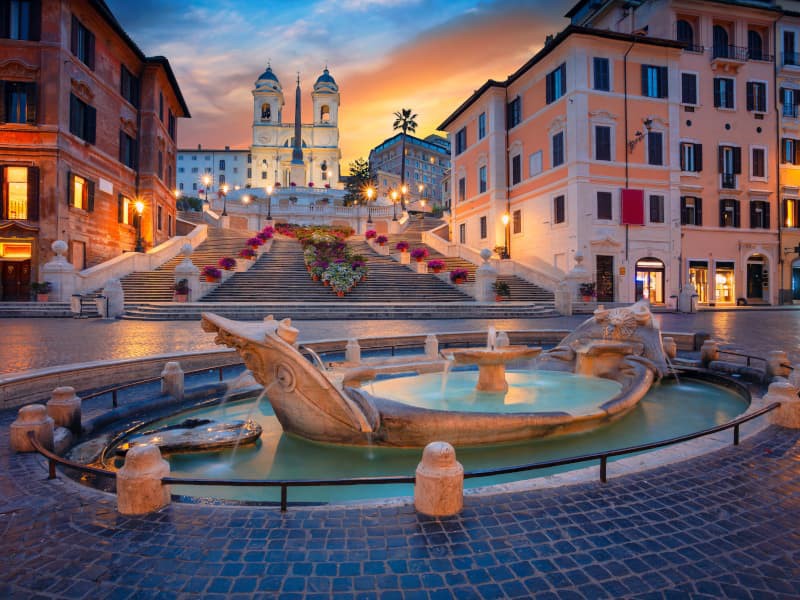 Back to the coach again to reach the Trevi Fountain. A walk will permit us to discover the baroque heart of the city, starting with the Piazza Di Spagna (IF TIME ALLOWS US AND BY DECISION OF THE GUIDE) and its famous Trinidad dei Monti staircase as well as Barcaccia fountain built in 1629 .