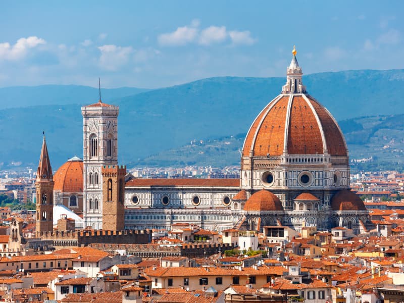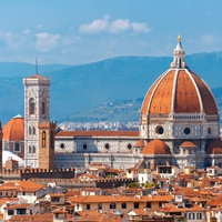 Discover the city of the Medici family thanks to a guided tour from Piazza Santa Maria Novella to the magnificent complex of the Cathedral of Santa Maria dei Fiori with its impressive dome, the Baptistery (outside), and the Giotto bell tower (outside). Continue your walk down various streets to the Piazza della Signoria, to see the Gothic Old Palace with its ornate courtyard and artistic treasures. The Loggia dei Lanzi is an open-air museum displaying masterpieces of sculptures!