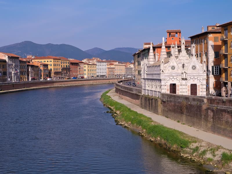 Bordering the Arno River, we find the Church of Santa María della Spina, the Palazzo Agostini Venerosi della Seta, the Palazzo Blu and the Church of Santa Cristina, built in the 16th century. We will then continue our walk through Piazza Garibaldi until we reach the dei Lungarni Theater. From there, we will walk through the narrow streets of Borgo Stretto, until we reach Plaza San Felice from where we will be able to contemplate the capitals that represent images of the battles from the Hellenistic era. We will then continue to Piazza dei Cavalieri di Santo Stefano with his Church and the Gualandi Tower where the famous Count Ugolino, one of the protagonists of Dante's Divine Comedy, died of hunger.