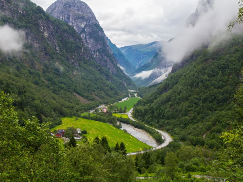 Our journey will take us to Stalheim, a 300-meter-high cliff offering an incomparable view of the Nærøy Valley and the imposing Jordalsnuten mountain, also known as “Sugarlump.” Without a doubt, this is one of the most striking landscapes — a place that will remain etched in your memory.