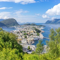 The largest town on the northwest coast of Norway, the setting is spectacular, with three islands close to the ocean and a backdrop of towering mountain peaks.