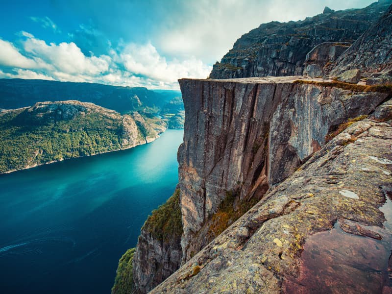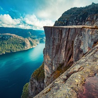 From the top of the imposing Pulpit, spectacular mountain scenery can be seen towards the beautiful fjord. The Pulpit is a spectacular natural rock formation, a 25m x 25m platform, over a beautiful fjord at an altitude of 604m. The fjord is 42km long and is formed by towering glaciers from the last ice age. The Pulpit was probably formed after the thaw, about 10,000 years ago. The mountain tops around the pulpit reach a height of 1000m on both sides of the fjord, offering sensational views.