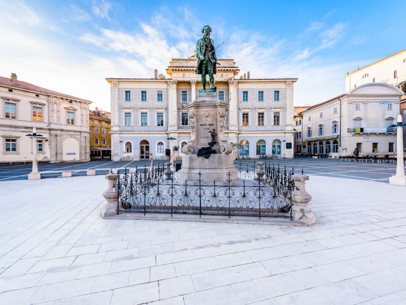 Tartini Square is the gem found in the very centre of Piran. It was named after the famous violinist and composer Giuseppe Tartini, who made the town world-famous. His statue is located in the centre of the square. The city is surrounded by a circular wall. The city of Piran is a national historical monument.