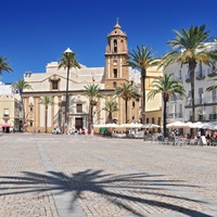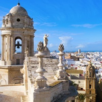 We will begin our excursion with a panoramic tour by bus around the walled area, passing by Cuesta de las Calesas, Plaza de España, Murallas de San Carlos, Alameda Apodaca, Parque Genovés, Baluarte, La Caleta Beach, the Castles, Campo del Sur, the Cathedrals, the Roman Theatre, Puertas de Tierra, and Plaza de San Juan de Dios, where we will make a stop to get off the bus.