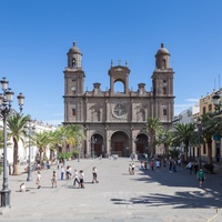 We’ll head to the historic district of Vegueta to visit Plaza Mayor de Santa Ana, one of the most iconic places in Las Palmas, located next to the most important building in Canarian architecture, the Cathedral of the Canaries — a perfect spot to take photos with the famous dogs of Gran Canaria and admire the façade with its imposing twin towers.